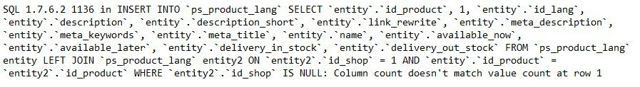 Francesco Posted November 25, 2021 Author Share Posted November 25, 2021 Les dernières lignes du message d'erreur je ne peux pas les intégrer au post car le site me bloque (certainement à cause des lignes de type INSERT etc. Je poste donc un screen. Link to comment Share on other sites More sharing options...