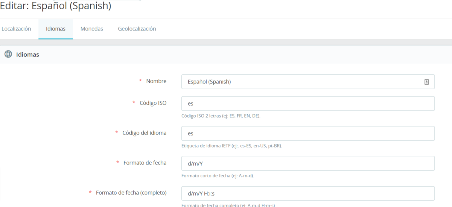 DéboraGM Posted December 6, 2021 Author Share Posted December 6, 2021 On 27/11/2021 at 19:41, Josraso said: Mira que en internacional-> traducciones lo tengas asi y tambien trata de actulizar el idioma español en internacional-> traducciones-> Añadir / Actualizar un idioma El problema estaba en el formato de Fecha, probé varias formas y por fin di con a tecla. Mil gracias!! Link to comment Share on other sites More sharing options...