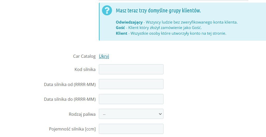Robiłem kopie sklepu dla oddziałów zagranicznych. Przy dodawaniu kategorii mam opcje Car Catalog klikam pokaż i tam mogę ustawić konkretne dane samochodu tak jak na załączniku.