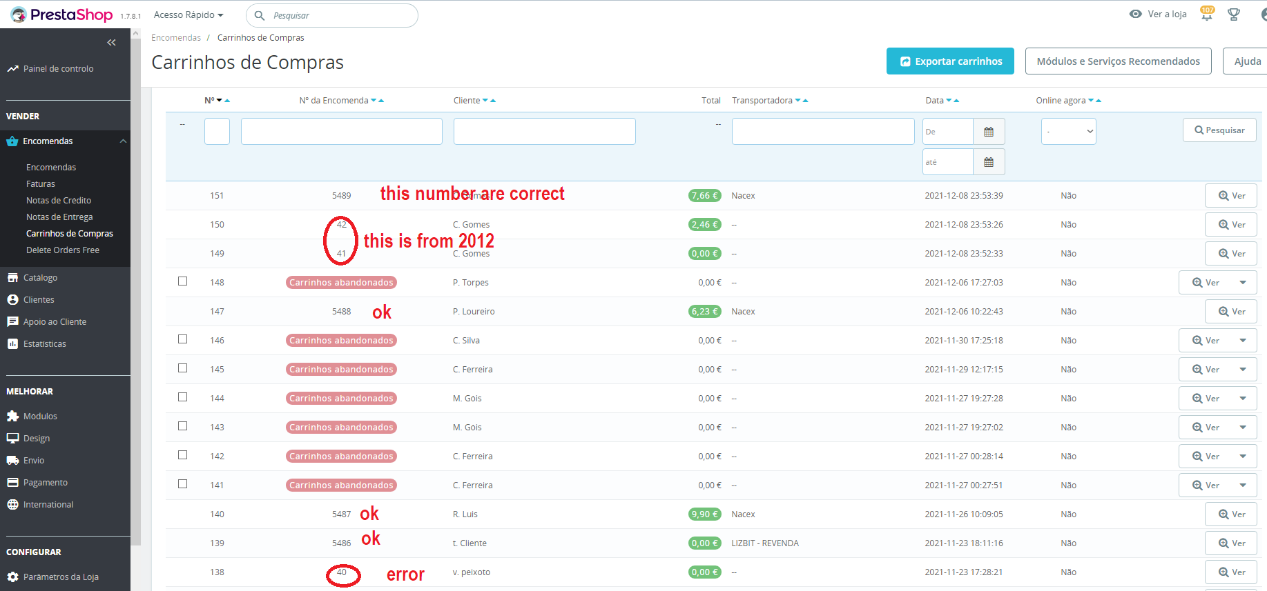 kalu Posted December 13, 2021 Author Share Posted December 13, 2021 I have solved this problem. I have buyed a Module por delete carts and orders, after delete 1000 orders, the site begins to work normaly with correct sequence. Thank's for help. Link to comment Share on other sites More sharing options...