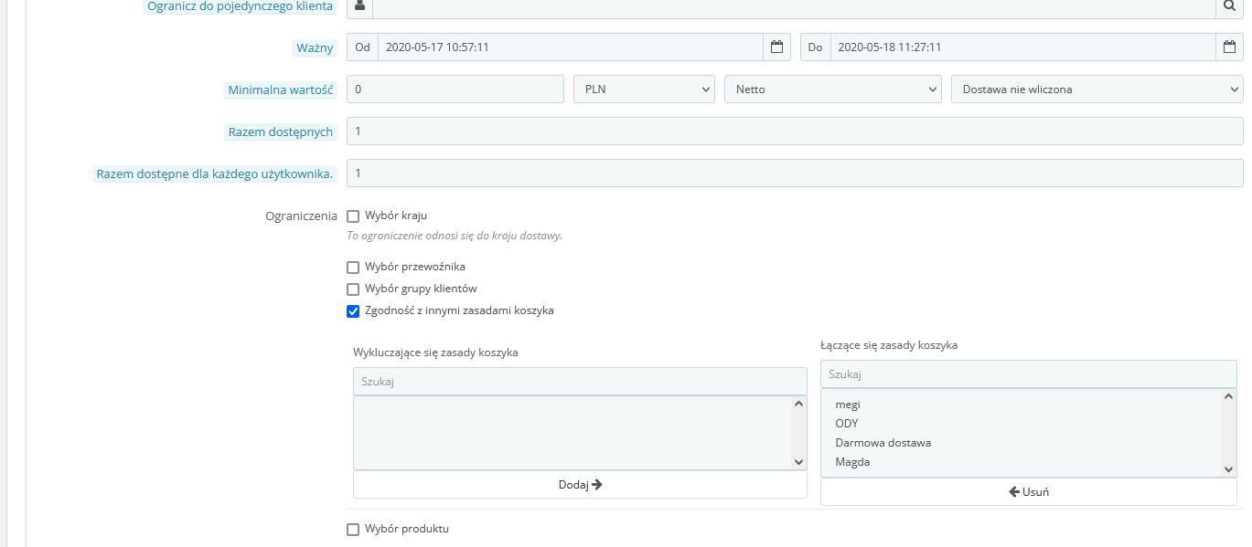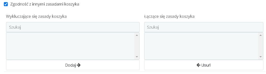 Jeśli chce ustalić "zgodność z innymi zasadami koszyka" to w każdym ustalonym rabacie, nic nie ma.