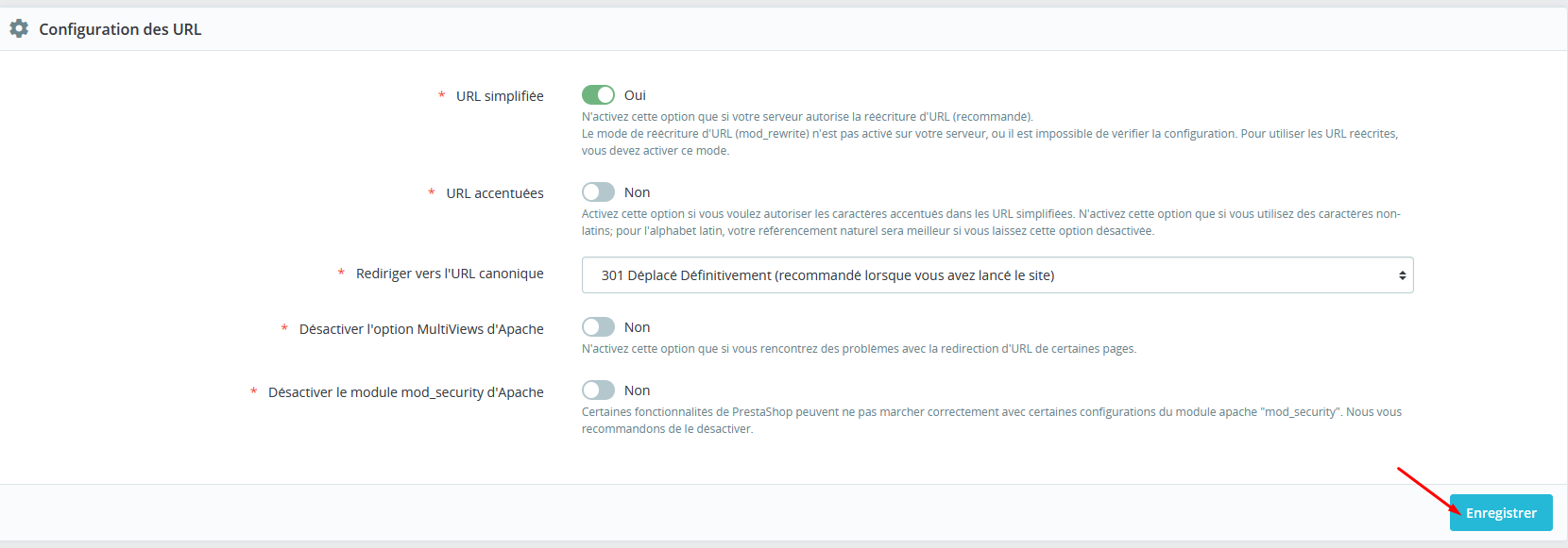 CamilleV Posted March 31, 2022 Share Posted March 31, 2022 I had this issue with Pretty URLs too (don't know if it is the source of the issue, because we migrated too) What I did to solve this issue is going to "Shop settings" > "Trafic and SEO" (sorry if it's not the exact terms, I'm translating from French) and simply save again the settings under "URLs settings", where you set prestashop URL rewrite : That was it for me, hope this helps. 1 Link to comment Share on other sites More sharing options...