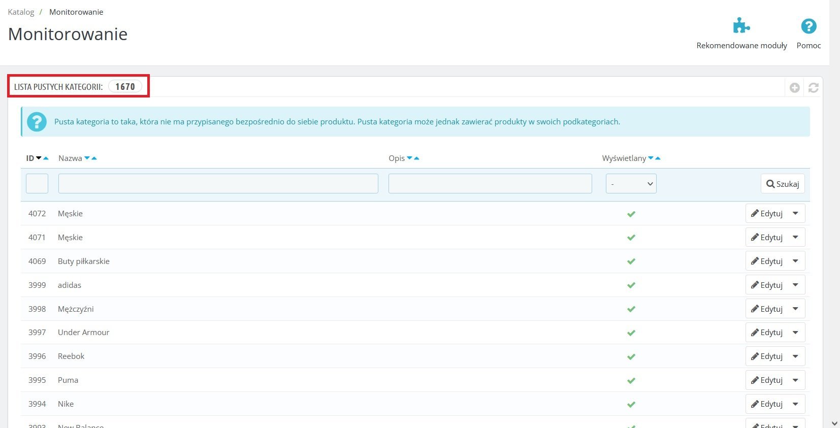 Witam, czy jest jakiś sposób na automatyczne usunięcie pustych kategorii z presty. Na ten moment mam 1670 kategorii. (zdj.1)