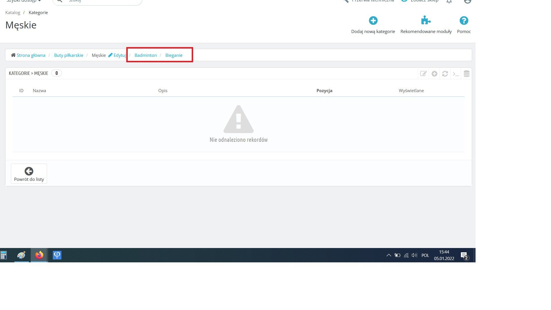 Jak chcę dodać jakąś kategorie ręcznie to kolejne podkategorie wpadają mi do kategorii które już kiedyś zostały dodane (zdj.2)