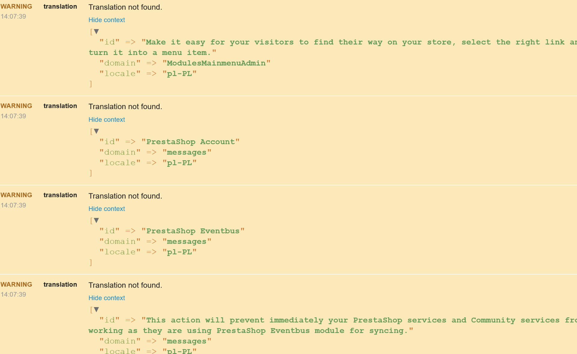 W logach odnosi się do katalogu translations pisząc, że nie istnieje