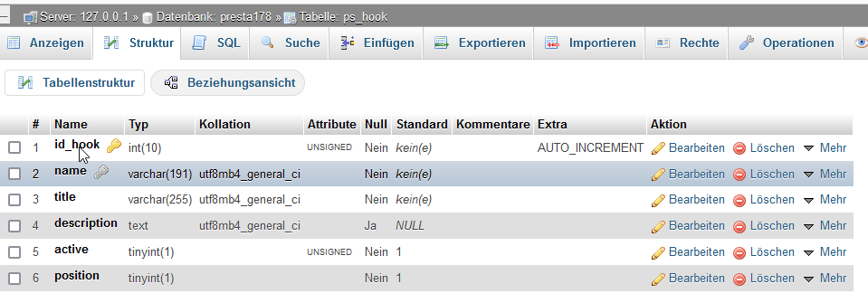 dap1234 Posted January 11, 2022 Author Share Posted January 11, 2022 46 minutes ago, JBW said: I see active column in my 178 install. Guess this is missing here and should be added ALTER TABLE `mod875_hook` ADD `active` TINYINT UNSIGNED NOT NULL DEFAULT '1' AFTER `description`; Yes, one line is missing (active). Now, when i click ADD it sending me to this screen (bare in mind, I`m completely rookie with this and I dont want to do even bigger mess). Which fields I should fill? Thanks Link to comment Share on other sites More sharing options...