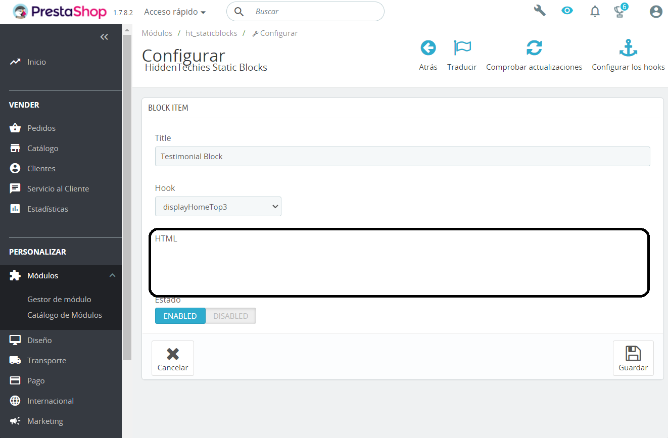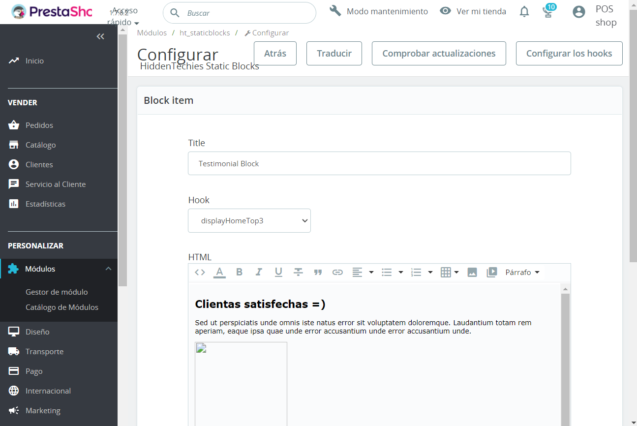 AbimaelMT Posted January 12, 2022 Share Posted January 12, 2022 Hola amigos, recién instale la ultima versión de prestashop, antes usaba la 1.7.0, instale el tema que usaba en la anterior version, y tengo un modulo HiddenTechies Static Blocks que permite ser editado en html, el caso es, que el editor aparece y desaparece, tal como muestro en las imágenes. Importante, no he instalado otros módulos ni nada, el prestashop base esta recién instalado. Alguien sabe porque pasa eso? Gracias de ante mano. Link to comment Share on other sites More sharing options...