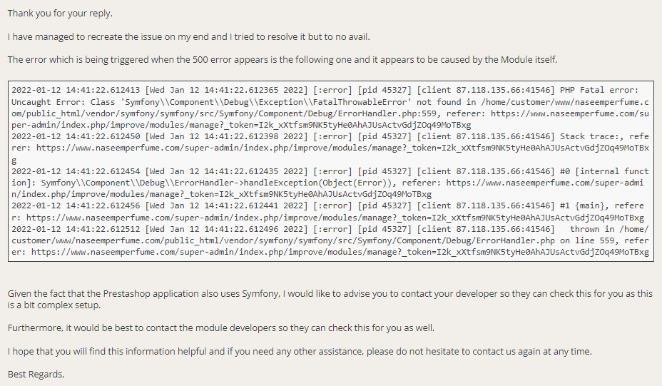 Moiz Hussain Posted January 13, 2022 Share Posted January 13, 2022 Hii, When I am trying to update my Prestashop version 1.7.8.2 with the One-Click install module but It will redirect to 500 server errors I have many nodes available in my hosting panel. In contacting my hosting provider, they re-created my web application and upgraded prestashop from the development side but still can't resolve the issue. Please find the attached reply from my hosting provider. Link to comment Share on other sites More sharing options...