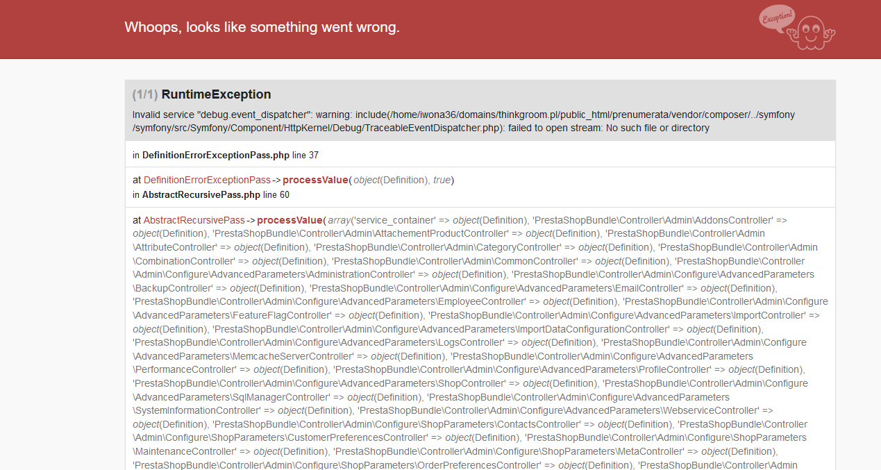 Moduł udało się zainstalować, ale tuż po wywaliło całą stronę z takim komunikatem