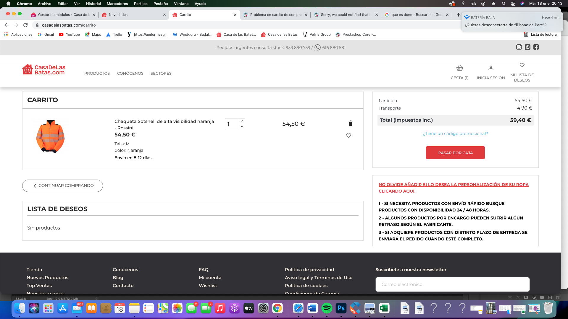 Pere Garcia Posted January 18, 2022 Share Posted January 18, 2022 (edited) Hola a todos. Tenemos el problema que a algunos clientes, con el navegador Chrome (no les sucede a todos), quieren "Pasar por Caja" y la web no avanza. A algunos les vuelve a Home y a otros, como en el video que adjunto, se queda "colgada", no pasa del "carrito" a "pedido". La web les queda en un bucle infinito sin poder finalizar el pedido. La única forma para que puedan completar la compra es cambiar de navegador. Por cierto, la web es https://casadelasbatas.com Gracias. Edited January 18, 2022 by Pere Garcia (see edit history) Link to comment Share on other sites More sharing options...