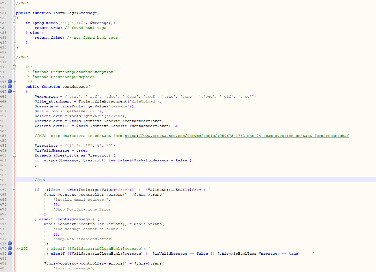 MJ_C Posted February 9, 2023 Share Posted February 9, 2023 Hello @ps8moduly.cz, many thanks for this BUT it didn't work for me. I entered the code in the correct places but when I tested, the messages were sent without error/warning. It should be the correct file as it matched yours and also as I made a typo and forgot a brace, it didn't work, until I corrected. /modules/contactform/contactform.php Any ideas? Also, if anyone can point me to a maths question easy code guide for prestashop 1.7.6.7, I would be grateful. Link to comment Share on other sites More sharing options...