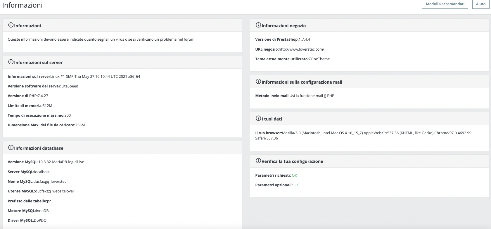 ComGrafPL Posted January 25, 2022 Share Posted January 25, 2022 38 minutes ago, Diego91 said: Php is 7.1 and Prestashop is 2.0.2. Thanks Go to Advanced -> Information. Make a screen and post it here. Link to comment Share on other sites More sharing options...