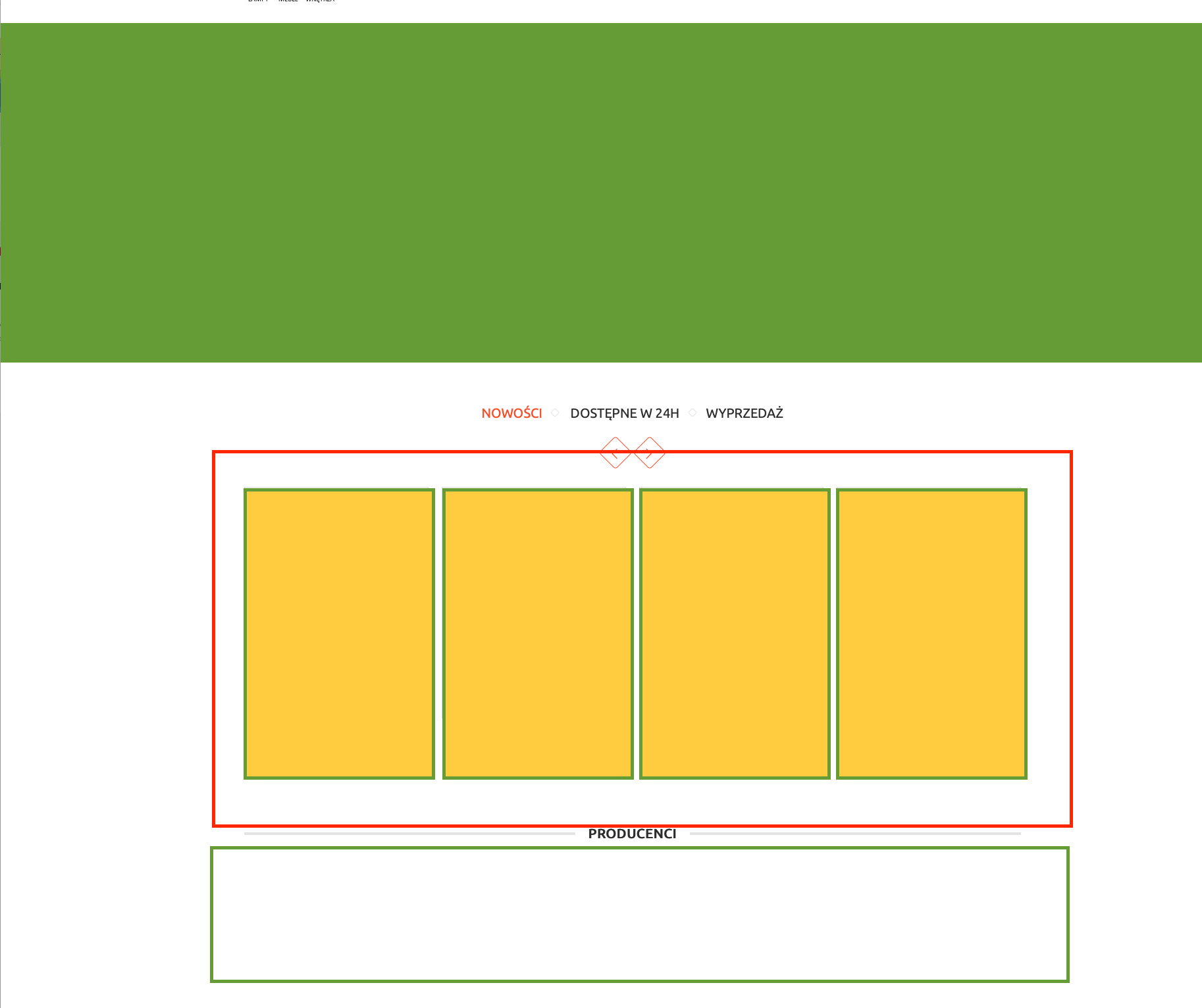 Na stronie głównej w jednej lini wyświetlają mi się produkty jako NOWOŚĆ, POPULARNE, POLECANE