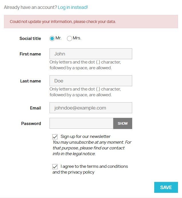 Hefesto Posted March 9, 2022 Share Posted March 9, 2022 Hello, i need some help here. When i try to create a new customer account shows up the following error message:Could not update your information, please check your data. Disabled theme, non native modules, overrides, emails and activated debug mode but can't figure out the problem. Prestashop version: 1.7.8.4 Link to comment Share on other sites More sharing options...
