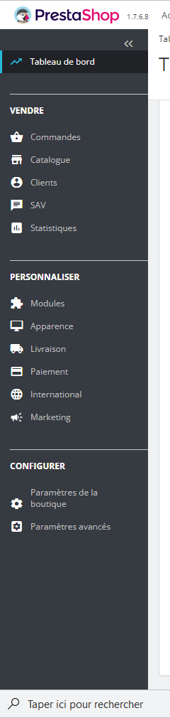 jeffdu13 Posted March 19, 2022 Share Posted March 19, 2022 (edited) Windows 7 Pro 64 bits | Résolution de travail 2560x1440 | Module 1 clic Prestashop v1.7.6.8 chez OVH. Bonjour à tous 😀 J'ai enfin sauté le pas pour me lancer dans l'aventure des sites de e-commerce sous Prestashop ! Et ça commence pas très bien 🤔 Nom de domaine et hébergement fraichement acheté chez OVH, installation d'un module en 1 clic Prestashop. J'entre dans l'administration de Prestashop et là : Le menu vertical noir à gauche est correctement affiché, mais le contenu à droite est tronqué, je vois ne vois pas entièrement l'interface, plusieurs bug d'affichage présent au niveau des textes, donc je ne peux pas créer de catégorie, ni de produit, bref inutilisable quelque soit le navigateur utilisé (Firefox, Opéra, Edge)... Quelqu'un a une idée ? Edited March 19, 2022 by jeffdu13 (see edit history) Link to comment Share on other sites More sharing options...