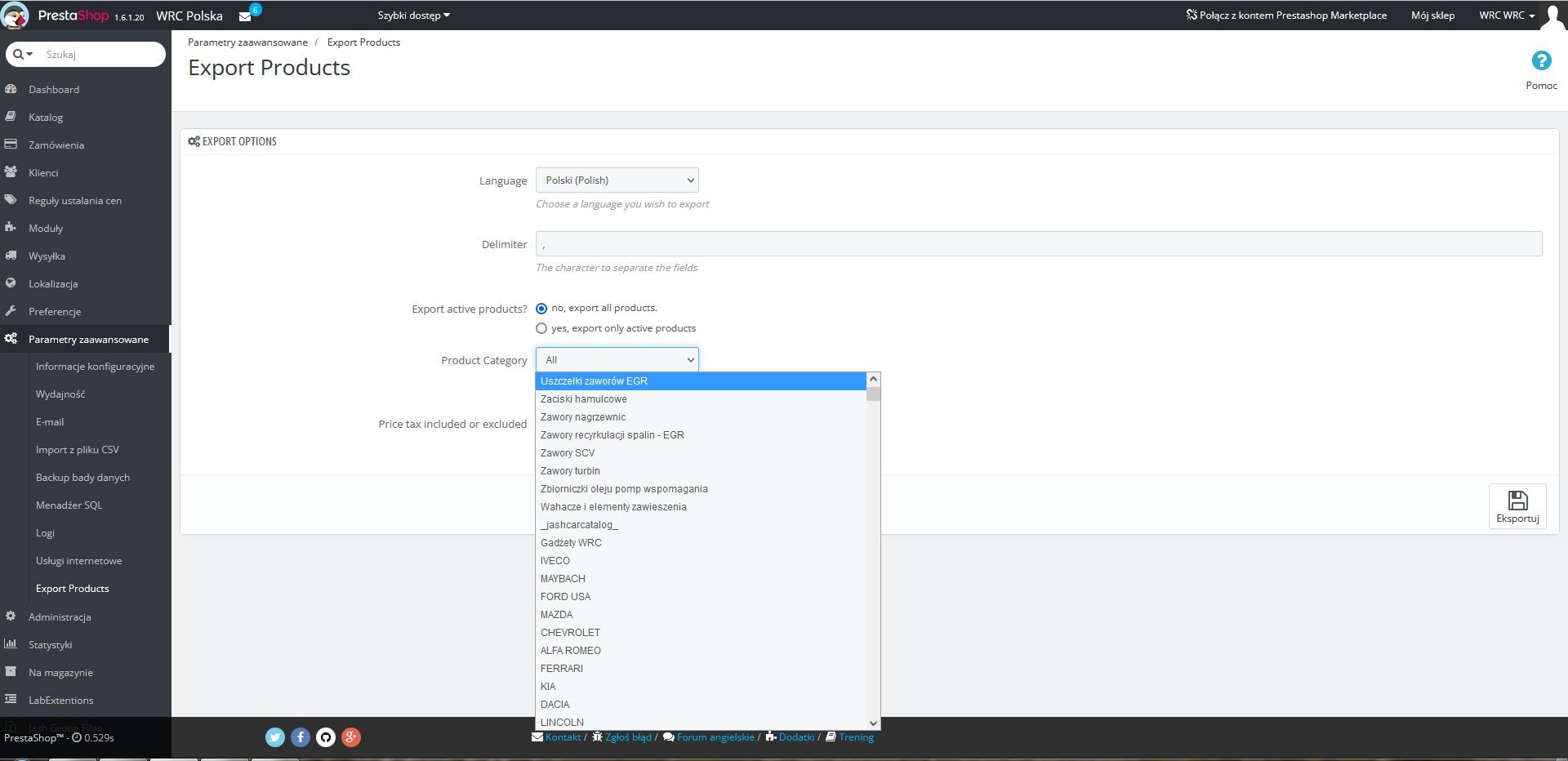 Mam taki problem chciałbym ściągnąć z presty plik csv. bądź xml. z produktami i przypisanymi do nich autami(zastosowaniem produktu w aucie). Przy eksporcie z presty pobiera tylko cenę; nazwę produktu; kategorie i stan. Czy można edytować które dane produktu ma pobierać z poziomu presty?