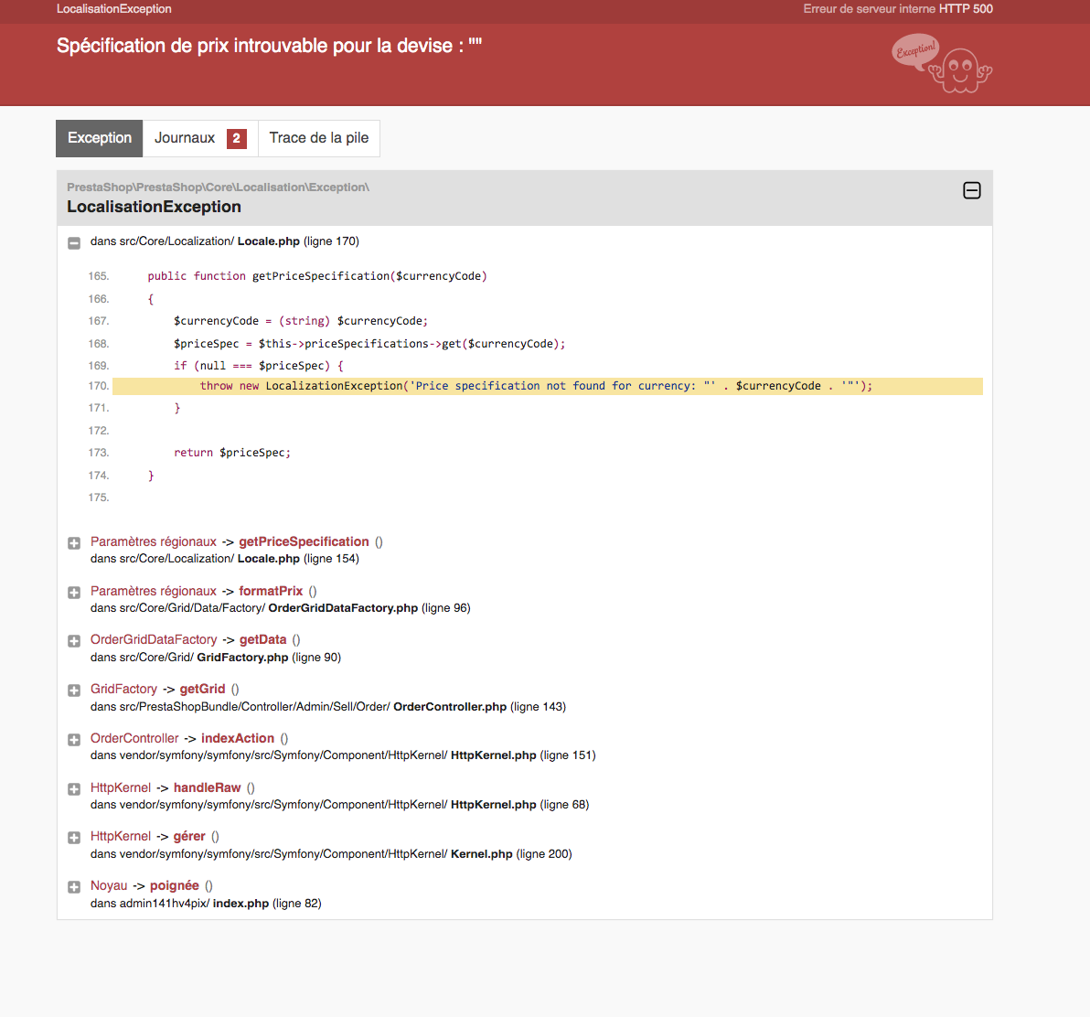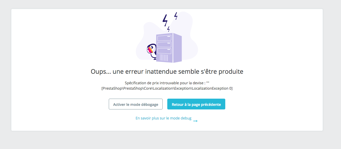 [PrestaShop\PrestaShop\Core\Localization\Exception\LocalizationException 0]