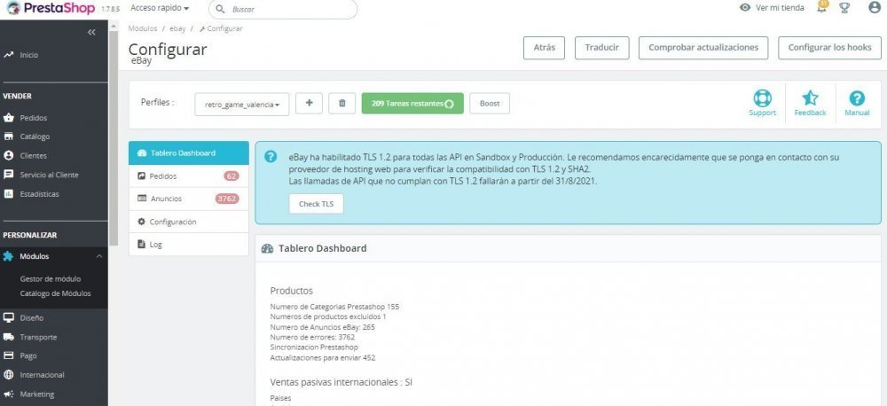 majhony Posted April 4, 2022 Share Posted April 4, 2022 Hola, tengo prestashop 1.7.8.5 y ebay 2 v2.2.3, desde hace unos días no sincroniza correctamente, cuando empiezo a sincronizar funciona bien, pero a los pocos minutos se bloquea y no vuelve a funcionar hasta pasadas unas horas en el mejor de los casos, adjunto una imagen de ejemplo, tenia 264 tareas pendientes, ha cargado 55 y se cuelga todo el rato en 209, tanto con sincronización normal como turbo. estoy desesperado, ya tuve problemas con el token de ebay, después de solucionarlo actualizando a la ultima versión de prestashop y el modulo de ebay, no me cargaban las características de ebay para importar mis productos, que ahora cuando se cuelga tampoco carga, Adjunto una segunda captura de la misma. ¿Alguna ayuda? Gracias y saludos. Link to comment Share on other sites More sharing options...
