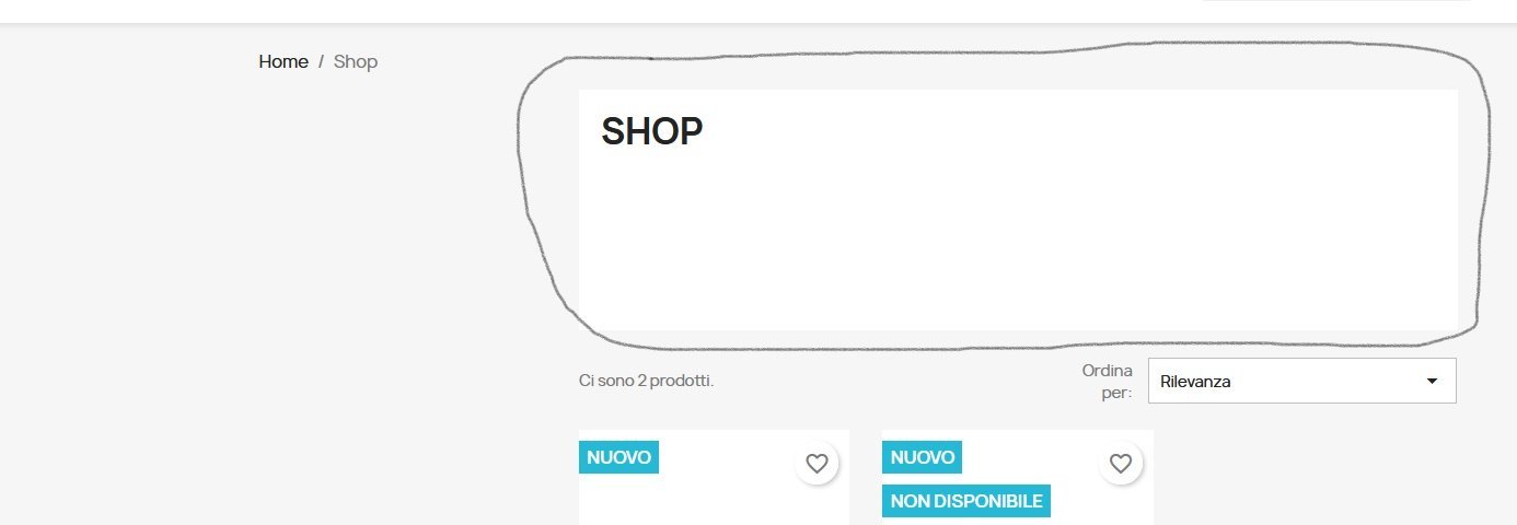 Ress Posted April 16, 2022 Share Posted April 16, 2022 Puoi farlo con questa regola CSS: .block-category { display: none; } Oppure il template dove cancellare il codice html della sezione: prestashop_root/themes/classic/templates/catalog/_partials/category-header.tpl Link to comment Share on other sites More sharing options...