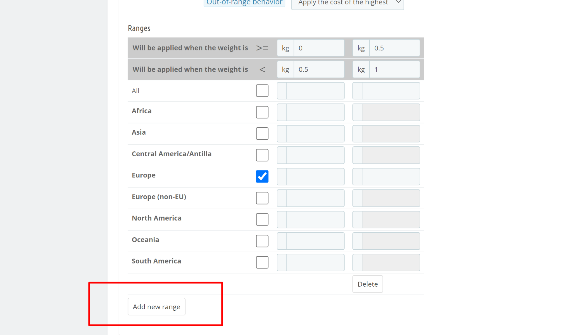 So, I have multiple weight range for a different cost. For example: