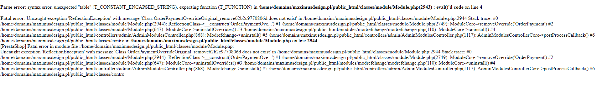 Maximus Design Posted June 22, 2022 Share Posted June 22, 2022 One of our employees uninstalled the module that changed the order ID numbers from e.g. CDXPZBCDO to e.g. 4962 and now I cannot install this module and when i try to see some order in backoffice i got error 500, screen from debugging Link to comment Share on other sites More sharing options...