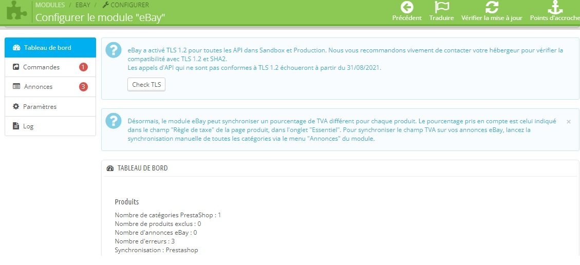 autoprestige Posted September 6, 2022 Share Posted September 6, 2022 (edited) Bonjour, pour ce site oui (autoprestige-alarmes)Version de PHP 5.6.40, mais je travaille sur une boutique EBAY qui 2 ans. Boutique EBAY avec 7000 produits qui ont été synchronisés avec un autre site internet (autoprestige) qui utilisait EBAY 1.14.0 qui est devenu obsolète mais je reçois les commandes sur ma boutique PRESTASHOP (plus de synchronisation nouveau produit et mise a jour tarif et quantité). Ce jour j’essaye de connecter (autoprestige-alarmes) sur la même boutique EBAY (TISCA-DISCOUNT) nouvelle photo Bonne journée, Edited September 6, 2022 by autoprestige (see edit history) Link to comment Share on other sites More sharing options...