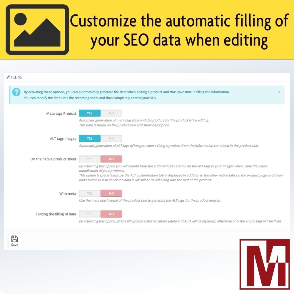 Mediacom87 Posted July 5, 2022 Share Posted July 5, 2022 Hello, You probably don't know it yet, but this module will save you time and will also offer you the possibility to delegate the management of the referencing of your catalog in complete security. So no, this module will not do the work for you, because SEO is a serious thing that must be thought out and above all always be unique and optimized for all the products in your catalog, not something that stupidly pastes identical data in the same place on all products. Yes, it's long, yes, it's tedious, but is your goal to make money with your business or just to please the module sellers? This module will allow you to access all the necessary data to set up a real referencing policy on your products, so on a single page you will be able to intervene on all the customizable elements and to customize your product sheets. More than a long speech, I let you take in hand the demonstration of the module. Module available on : Addons : https://addons.prestashop.com/en/seo-natural-search-engine-optimization/23257-manage-all-your-products-seo-on-a-single-page.html PrestaToolBox : https://www.prestatoolbox.com/seo/396-master-the-seo-for-your-products-on-a-single-page.html Link to comment Share on other sites More sharing options...