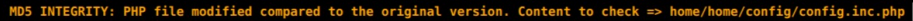 MD5 INTEGRITY : Fichier php modifié par rapport à la version d'origine. Contenu à contrôler => public_html/config/smarty.config.inc.phpVoir