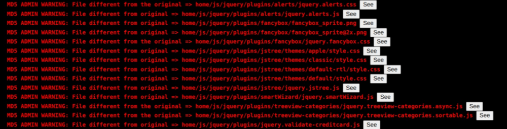 MD5 ADMIN WARNING : Fichier différent de l'original => public_html/**admin**/searchcron.phpVoir REMETTRE LE FICHIER D'ORIGINE