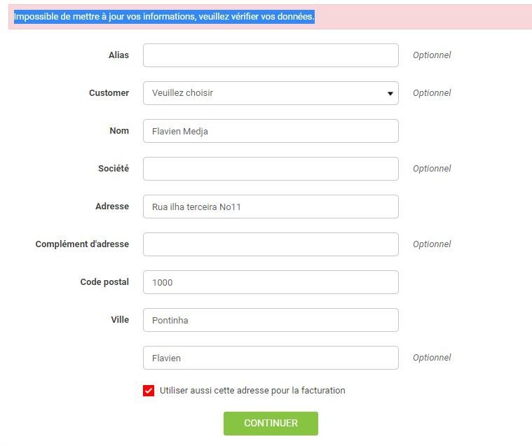 ptityop Posted August 20, 2022 Share Posted August 20, 2022 Hello, For some reason users are not able to place orders s the get stuck to the page you will see in the screenshot, it says there is a problem in the form but nothing is highlighted, and nothing shows up in debug mode... Any guidance will be welcome ! thanks in advance ! The warning says it is impossible to update details, please check your data ... but what ? Even filling all fields gets the same result .... Link to comment Share on other sites More sharing options...