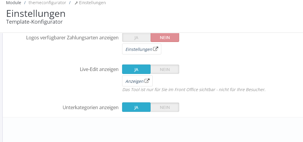 NSN Posted August 21, 2022 Share Posted August 21, 2022 (edited) Sollte under MODULE - THEMECONFIGURATOR - EINSTELLUNGEN zu finden sein Live-Edit anzeigen auf NEIN EDIT: Sehe gerade dass du ein Fremdtheme verwendest. Das Modul müsste bei dir Leo-Paneltool oder so ähnlich heißen. Edited August 21, 2022 by NSN (see edit history) Link to comment Share on other sites More sharing options...