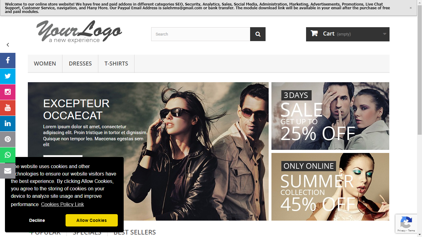 Zohaib-fk Posted August 25, 2022 Share Posted August 25, 2022 (edited) Hi All, Greetings of the day. This prestashop addon helps administrators to show interactive notifications regarding cookies used by stores as per EU Cookie Law compliance on bottom positions with a link to redirect the cookie policy page, management from the back-office with multiple options, and show different messages based on multiple store languages. Cookies allow a website to store and retrieve information about the browsing habits of a user or their computer and can be used to recognize patterns and tastes of the user. The user’s browser saves cookies on the hard drive only during the current session occupying a minimum memory space and without harming the performance of the user’s computer. Cookies do not contain any type of specific personal information. In Europe, every website must show a banner to say that you are using cookies. There are different laws in different countries which means actually this banner must be implemented differently. But in most cases, it is enough to have just a banner that the user can close and won't see any more after the page reload. Cookies enable websites to gather data about visitors and users. Cookies let websites remember you, your website logins, shopping carts, and more. This module helps to show different language information based on store language. For example, the German language store will have messages in German, and the French language store will have messages in French. The Cookie Law is a piece of privacy legislation that requires websites to get consent from visitors to store or retrieve any information on a computer, Smartphone, or tablet. It started as an EU Directive that was adopted by all EU countries in May 2011. If you own a website, you will need to make sure it complies with the law. This module is a light, elegant and powerful solution that allows your shop to comply with the European cookie law by informing users that your site has cookies, with a link for more information and understanding customer messages in their own language. Features - Support all browsers: Firefox, Chrome, IE, Safari, Opera, etc. - Lightweight and fast loading. - Facility to manage all text and configuration from the back office. - Facility to manage positions top and bottom from back-office. - Supports multiple language stores with different messages based on the language of each store. - Addon is W3C compliant. - Easy to use and install. - Compatible with PrestaShop 1.6.x,1.7.x - Multiple browsers compatibility(IE, Firefox, Opera, Safari, Chrome, and Edge). - Mobile, Tablet, and all devices compatible. - Module works without doing any change in existing files on PrestaShop store versions. - 24*7 Support - Good Documentation Benefits to Customers - Customers trust your products & services. - Customers will be informed regarding the use of cookies on websites and information storage. - Customers will get interactive popup notifications in their language about the store followed by cookie law. - Customers will feel safe and secure using the shop. Installation : Step 1: Upload the module zip file from the back-office Module & Services menu tab. Module Manager area using the upload button. After the successful installation module menu, the link will appear in the left menu or top menu in the back-office area. Step 2: Install the module using the install button. Step 3: Visit the module management page from the back-office "More" area (section) in the left menu in the back office. Step 4: The module installation process is very easy, how module configuration works can be seen in the demo instance. Step 5: Please visit our demo instance for module configuration and usage demo. Step 6: Please watch our YouTube channel for demo videos on the module, and how to use and configure it on the website. - Module works without making any change in the existing PrestaShop file so that existing customization and theme change do not affect. - We provide free technical and feature support in installation, and configuration, as well as access to updates available for this product. - Free support on installation, configuration, and customization as per store requirements, for example, new hook addition to your store Other : Please leave your valuable feedback after using the module. This will help to increase self-confidence, improve service, and enhance the module as per requirements to make it better for different online stores. Request: Please share your website URL after using the module to help others see how the module works on your website. Download Module and Documentation Alternate Download Link => https://www.presta-addons-modules.com/en/free-modules/prestashop-cookie-consent-banner.html Attached is the module zip at the end of this post. Demo URL => https://www.presta-addons-modules.com/en/ Please note only the free module will send an email to a developer with only a website link to know the module is installed successfully and working fine. This is to know module working fine and do future improvements and enhancements inside the module. Customer's success is our satisfaction. Pay any amount as per your choice to get the geolocation, multi-languages,multi-shops, multi-shop-groups and more features with lifetime support in the free add-on. sfkcookiebanner.zip Edited February 4, 2025 by Zohaib-fk Post Updated for screenshot & new features information (see edit history) 2 Link to comment Share on other sites More sharing options...