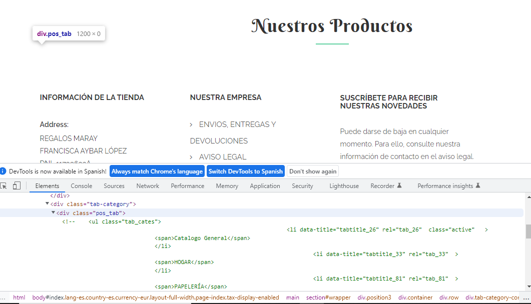 Marianodevbus Posted August 28, 2022 Share Posted August 28, 2022 Buenos días a tod@s, Estoy usando el tema Selena 1 de Posthemes y el módulo (Category Tab Slider) que controla los productos que se muestran el la home no funciona, no muestra ningún producto solo el título. He reiniciado el módulo y configurado de nuevo pero nada no hay manera. Tampoco desde cuando no se muestran los productos, ya que hacia días que no entraba en la tienda. Tampoco he hecho ningún cambio, ni he tocado nada para que pudiera ocurrir este error. Alguna idea? Muchas gracias por vuestra ayuda. https://regalosmaray.com/ Link to comment Share on other sites More sharing options...