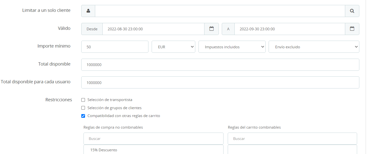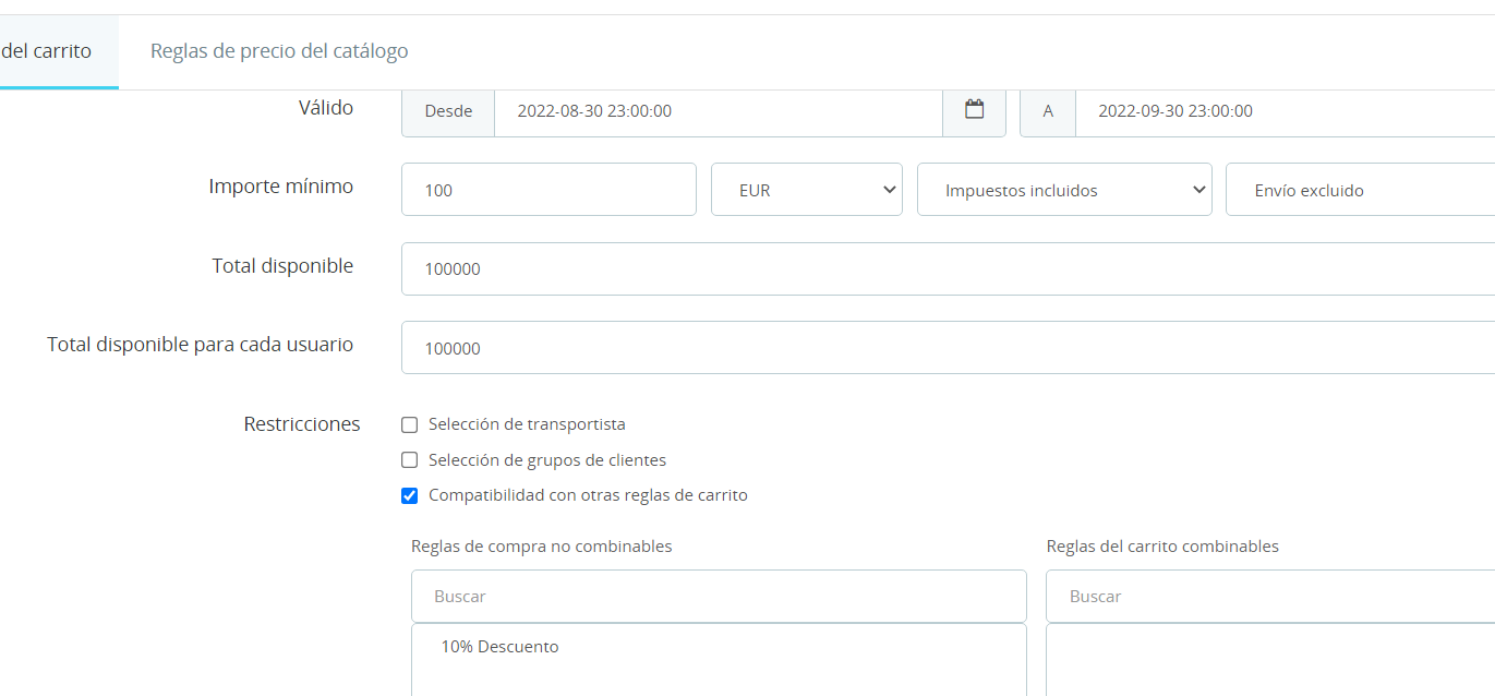 cart_rule_restriction has been set to 1, but these two discounts always appear together. What I hope to achieve by using the shopping cart rule is that the order amount is 10% off when the order amount is over 50, and 15% when the order amount is over 100.