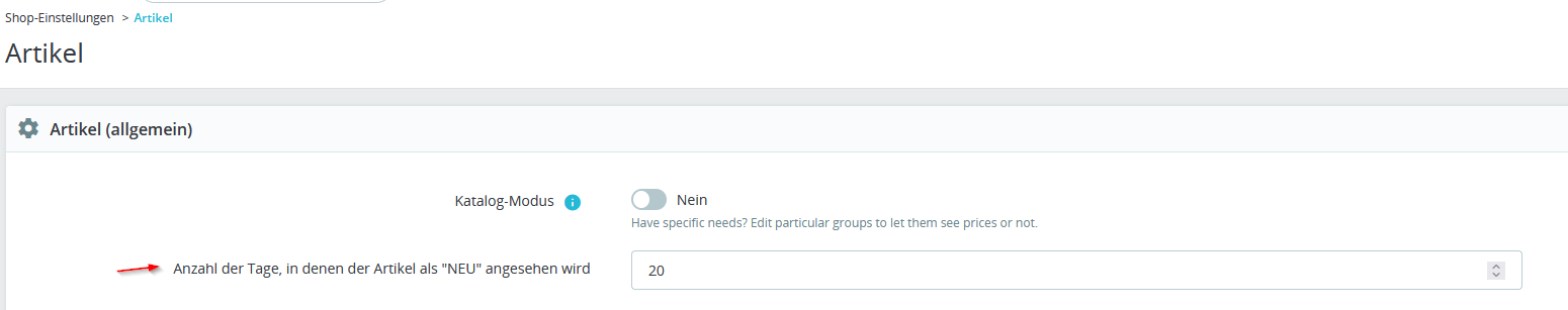 JBW Posted September 8, 2022 Share Posted September 8, 2022 13 hours ago, BeeJayF said: Der Block "Neue Artikel" zeigt die neuen Produkte an - das Modul ist eingestellt Produkte 40 Tage lang als Neu anzusehen - aber wenn ich auf den Link unter dem "Neue Atikel" Block klicke sehe ich die Kategorie Seite "neue-artikel" und auf der steht "hier ist es noch leer..." Die Tage kann man einstellen, bist du denn sicher dass du entsprechend neue Artikel im Shop hast? Link to comment Share on other sites More sharing options...