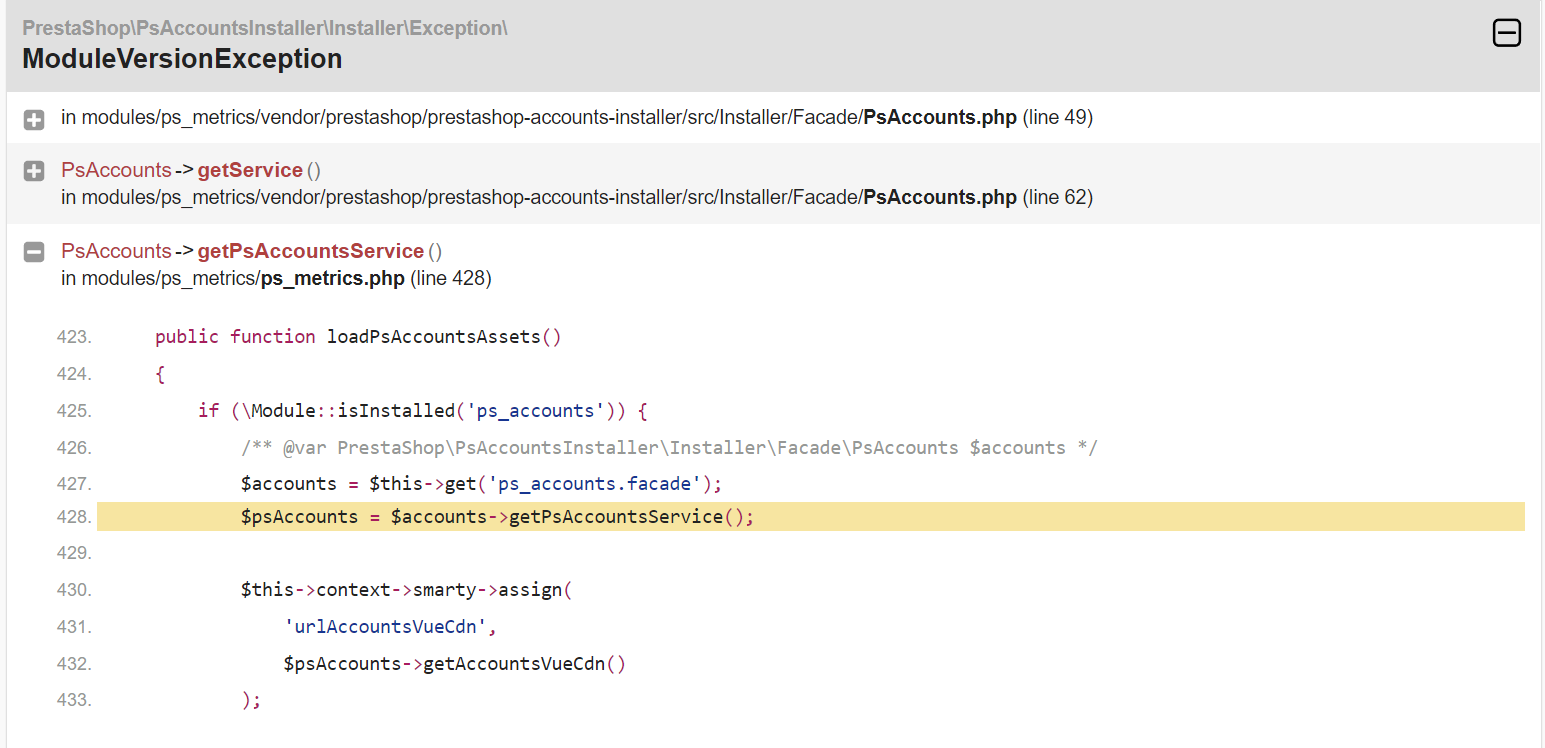 mati7716 Posted September 9, 2022 Share Posted September 9, 2022 I connected prestashop to a new database imported from another server. Virtually everything works, the problem is logging into the administrators panel. After logging into the back office, the following error pops up: Oops ... it looks like an unexpected error has occurred Module version expected : 5.0 [PrestaShop\PsAccountsInstaller\Installer\Exception\ModuleVersionException 0] Link to comment Share on other sites More sharing options...