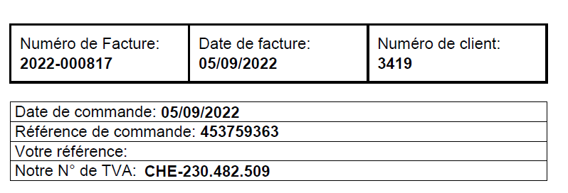mati7716 Posted September 11, 2022 Share Posted September 11, 2022 Do you want two table next to each other? If so, try this one. <table style=" display: inline;" id="summary-tab" margin="1" class="white" width="50%" style="margin-bottom: 10px;"> <tr> <td>{l s='Numéro de Facture: ' pdf='true'}<br /><strong>{$title|escape:'html':'UTF-8'}</strong></td> <td>{l s='Date de facture: ' pdf='true'}<br /><strong>{$date|escape:'html':'UTF-8'}</strong></td> <td>{l s='Numéro de client: ' pdf='true'}<strong>{$order->id_customer}</strong></td> </tr> </table> <table style=" display: inline;" id="summary-tab2" lass="white" width="50%"> <tr> <td class="border-bottom1">{l s=' Date de commande: ' pdf='true'}<strong>{dateFormat date=$order->date_add full=0}</strong></td> <td class="border-bottom1">{l s=' Référence de commande: ' pdf='true'}<strong>{$order->getUniqReference()}</strong></td> <td class="border-bottom1">{l s=' Votre référence: ' pdf='true'}</td> <td class="border-bottom1">{l s=' Notre N° de TVA: ' pdf='true'} <strong>CHE-230.482.509</strong></td> </tr> </table> Link to comment Share on other sites More sharing options...