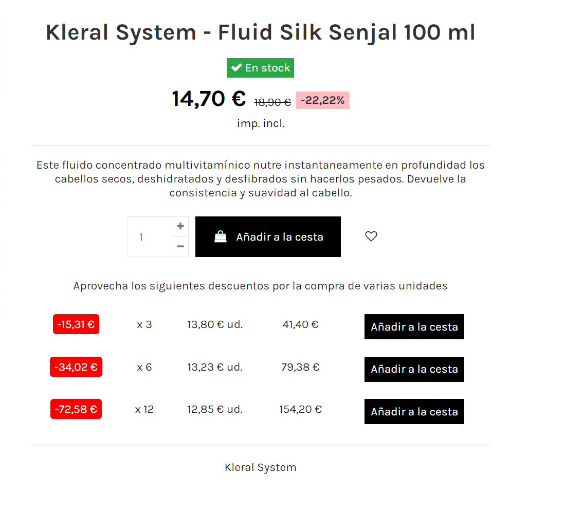 Coserty Posted September 19, 2022 Share Posted September 19, 2022 Buenas tardes, aqui os dejo la siguiente cuestion: En el descuento por cantidad de los articulos, me gustaria que se mostrara el ahorro calculado sobre el precio final del producto después de descuentos aplicados, y no sobre el precio inicial del producto. *Adjunto captura, donde el ahorro esta calculado sobre el precio 18,90€ (Precio Inicial del producto), y no sobre el precio actual del producto (14,70 €) Link to comment Share on other sites More sharing options...