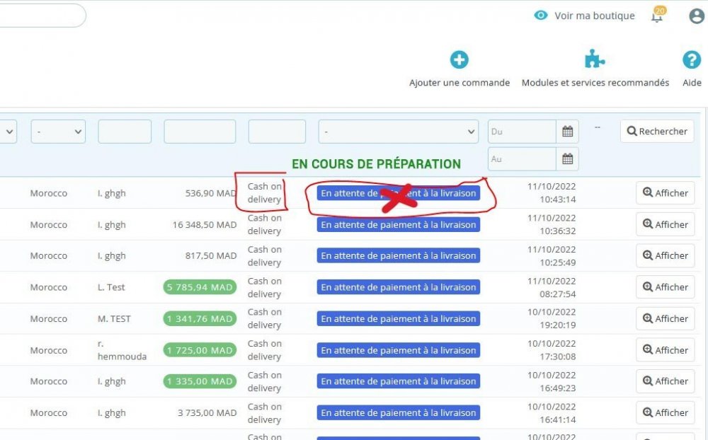 Issam Webmaster Posted October 11, 2022 Share Posted October 11, 2022 Bonjour, Ma boutique utilise la méthode de paiement à la livraison, lorsque le client passe une commande, je veux que l'état de commande sera "En cours de préparation" au lieu de "En attente de paiement à la livraison". Comment faire s'il vous plait, j'ai pas trouver une solution. merci a vous Link to comment Share on other sites More sharing options...
