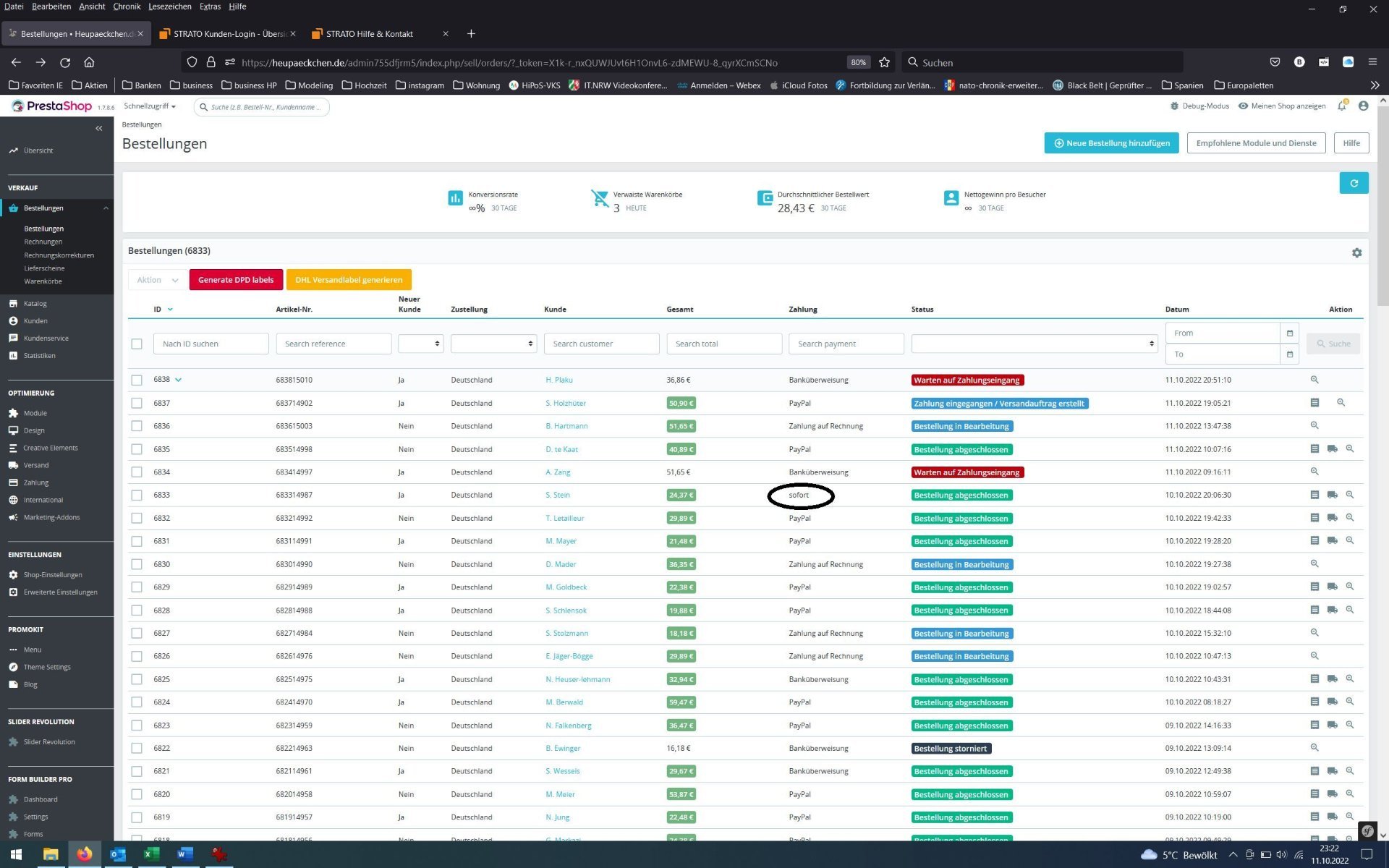 Status der Zahlung in der Bestellübersicht umbenennen