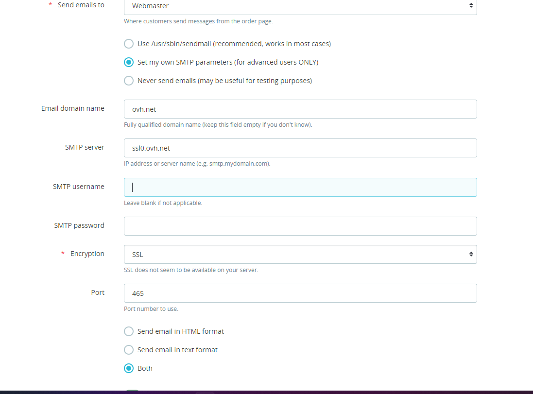 erro105 Posted October 28, 2022 Share Posted October 28, 2022 Hi, i have problem with send email via PrestaShop with OVH Im use that config, with my email login (SMTP username and password). When i cick send test email i have: But i dont recive any emails, in gmail and hotmail. Whats going on ? Link to comment Share on other sites More sharing options...