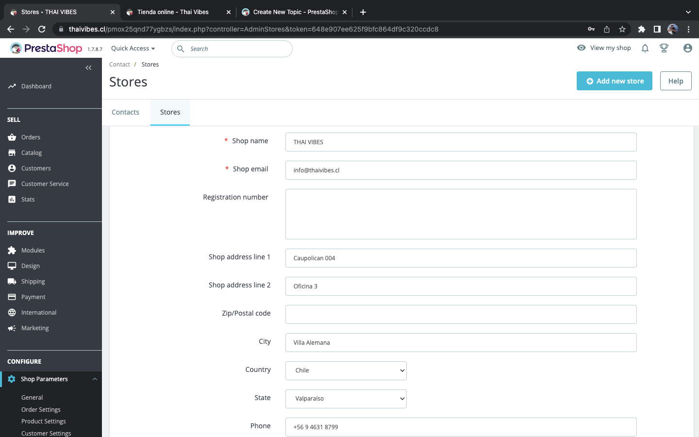 Thai Vibes Posted October 31, 2022 Share Posted October 31, 2022 Hola, de antemano muchas gracias. Tengo un pequeño problema con la dirección de la tienda, al ingresar los datos están en el orden correcto. direccion, ciudad, estado, pais pero en el front de la tienda se muestran en el orden equivocado. Direccion, Pais, estado, Ciudad. Dejo fotos a ver si alguien puede ayudarme a solucionar esto. Link to comment Share on other sites More sharing options...