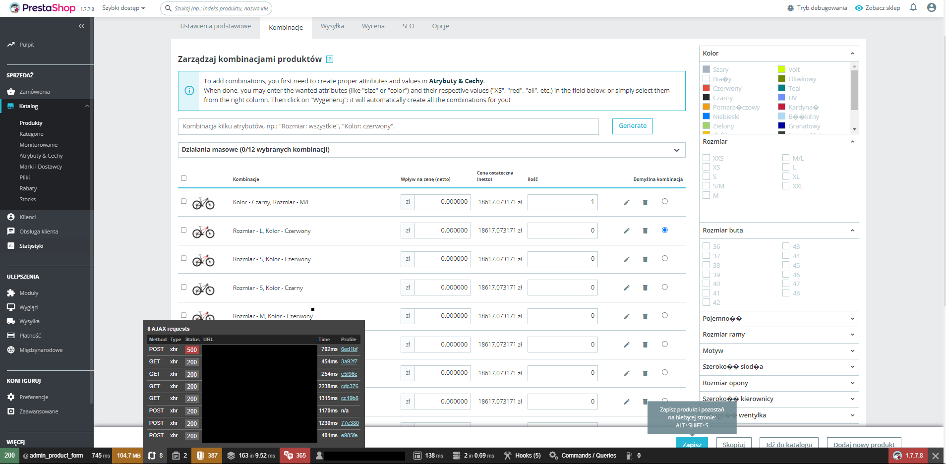 Zawada Posted November 1, 2022 Share Posted November 1, 2022 This happened suddenly and I don't even know hot to start diagnosing my problem and eventually fix it. When I'm trying to save changes in products with combinations there is a message i top right corner that changes couldn't been applied in red box, when debugging is off this trying to save product is making whole back office stop loading, I have to delete my browser history etc to log in again. When I am pressing F12 there is message in the console: Failed to load resource: the server responded with a status of 500 () Also in debugging there is 500 in red (as in picture attached), I have tried to search thru this but there is nothing I could follow up on. Link to comment Share on other sites More sharing options...