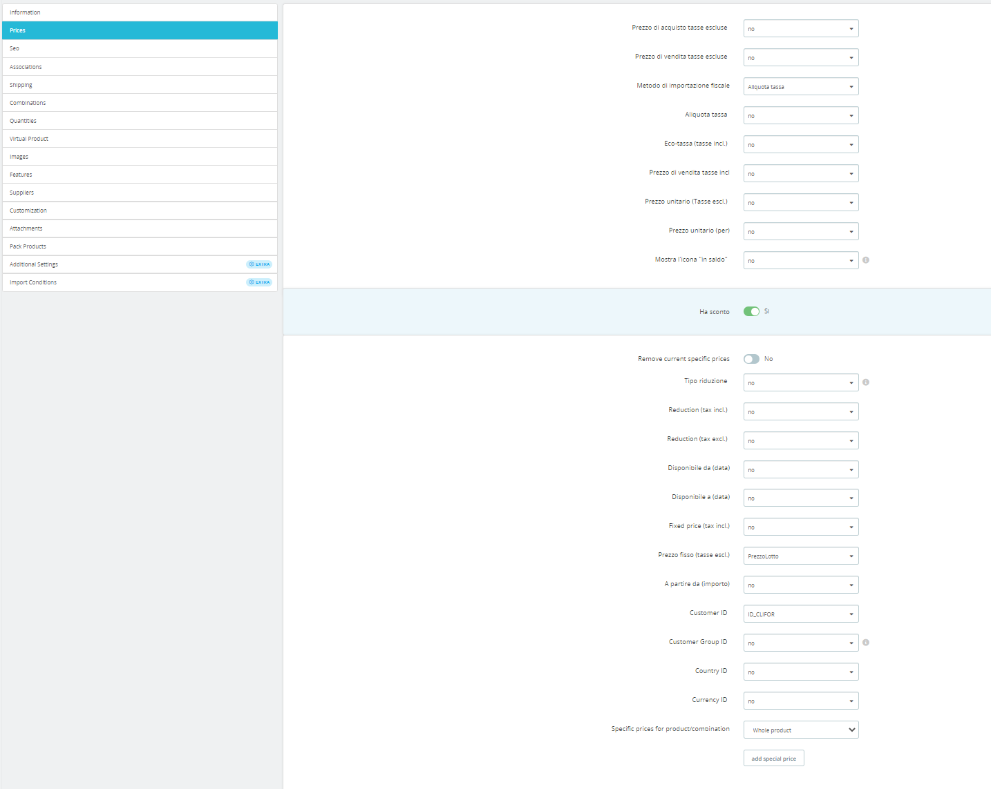 daniele dexter Posted November 10, 2022 Share Posted November 10, 2022 Hi, for import product with specific priece based on a specific user i use this module: https://addons.prestashop.com/it/data-import-export/19091-product-catalog-csv-excel-import.html I used your same module in the past, but i had some problem using it and the support can't help me to resolve my problems. For these reason i changed to the module that i linked. This is how i configured it: Link to comment Share on other sites More sharing options...