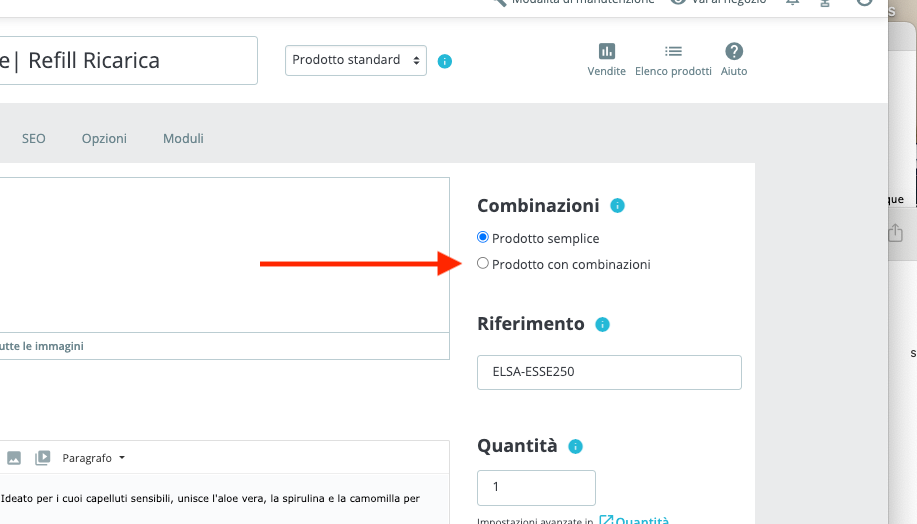 frogman968 Posted October 13, 2023 Share Posted October 13, 2023 3 ore fa, Kriter.io dice: Ciao Marco, se ho capito bene anche il prezzo del prodotto cambia in base alle scelte che l'utente fa nel "personalizzare" il prodotto. A questo punto ti suggerisco di lavorare su ATTRIBUTI e FUNZIONI assegnando i diversi valori e poi trasformare il prodotto da standard in PRODOTTO CON COMBINAZIONI dalla scheda prodotto come da allegato. fatto ciò, seguendo il link che si genera IMPOSTAZIONI COMBINAZIONI....sarà tutto in discesa e sincronizzabile. Spero di aver capito l'esigenza e di esserti stato di aiuto. Nel caso avessi bisogno di altri chiarimenti, scrivi. Ci siamo Ciao @Kriter.io in realtà una racchetta è già un prodotto con combinazioni (misure dell'impugnatura) e le combinazioni sono generate dal gestionale magazzino, quindi potrei provare a creare più varianti ma nel gestionale, altrimenti ad ogni sincronizzazione le caratteristiche del prodotto vengono sovrascritte GESTIONALE -> PRESTASHOP. Farò qualche prova... Però così non pesca i dati dalla categoria CORDE ma dalla lista che gli compilo io manualmente... Ciao Marco Link to comment Share on other sites More sharing options...