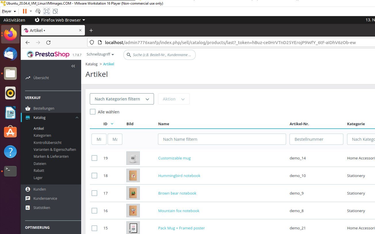 Wenn ich mit Linux auf den auf der Synology installierten PrestaShop zugreife,