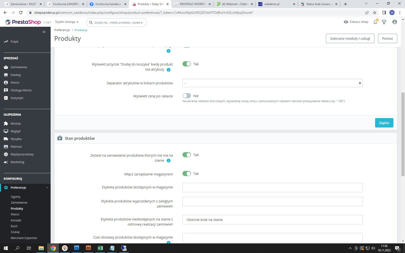 W Prestashop 1.7.8.7 mam problem ze statusem brak towaru. Jeśli Klient złoży zamówienie na towar którego nie ma na stanie to powinien się automatycznie ustawić status brak na stanie tak mi to działa w Prestashop 1.6 jednak w 1.7 tego mi nie robi, muszę go zmienić ręcznie i wtedy idzie mail do Klienta informujący o braku towaru. Co zrobić w Prestashop 1.7 aby ustawiał sklep ten status automatycznie?