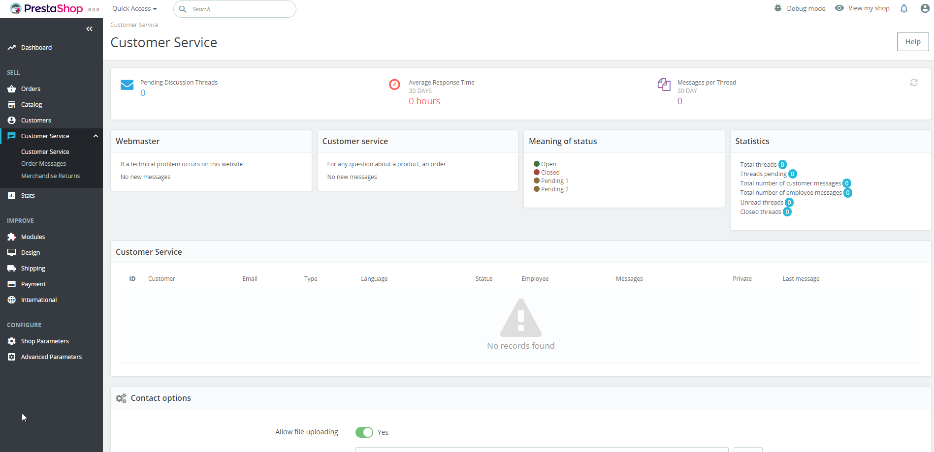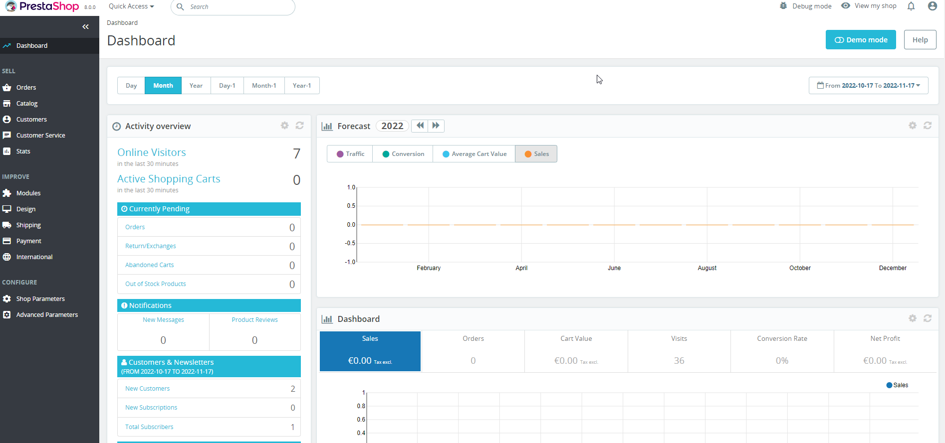 deividas1 Posted November 17, 2022 Share Posted November 17, 2022 Good day so i instaled prestashop8 everything as the system requirements ment https://devdocs.prestashop-project.org/8/basics/installation/system-requirements/ When i open the admin panel from all sections only Customer Service panel works and if i press any other menu Error 404 as you se in image shows up. in var/log/dev.log i can only find php.INFO: User Deprecated: Not specifying the optional ShopConstraint parameter is deprecated since version 1.7.8.0 {"exception":"[object] (ErrorException(code: 0): User Deprecated: Not specifying the optional ShopConstraint parameter is deprecated since version 1.7.8.0 at /usr/local/www/src/Adapter/Configuration.php:427)"} [] php.DEBUG: Warning: filemtime(): stat failed for /usr/local/www/admin/themes//template {"exception":"[object] (Symfony\\Component\\ErrorHandler\\Exception\\SilencedErrorContext: {\"severity\":2,\"file\":\"/usr/local/www/classes/controller/AdminController.php\",\"line\":461,\"trace\":[{\"file\":\"/usr/local/www//classes/controller/Controller.php\",\"line\":246,\"function\":\"__construct\",\"class\":\"AdminControllerCore\",\"type\":\"->\"}],\"count\":1})"} [] Please if you have any idea how to fix it then let me know BTW permisions already 0777 on all folders and files Link to comment Share on other sites More sharing options...