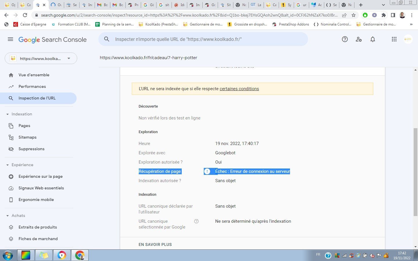 Emmanuel66 Posted November 19, 2022 Share Posted November 19, 2022 Bonjour à tous Je ne sais plus quoi faire depuis 15 jours mes sitemap ne passent pas dans la search console et j'obtiens toujours le message : Récupération de page error Échec : Erreur de connexion au serveur L'url de mon site est https://www.koolkado.fr/fr/ Pourtant j'ai tout testé et tous les voyants sont au vert...je ne comprends pas et déséspère.... Link to comment Share on other sites More sharing options...