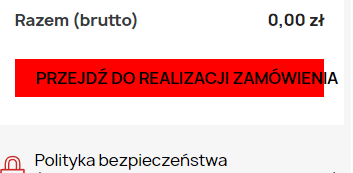 Następny problem, który mnie pokonał to przycisk w koszyku, a raczej jego opis - opis jest dłuższy niż sam przycisk — nie mam pojęcia gdzie i jak go wyedytować. screen nr 2